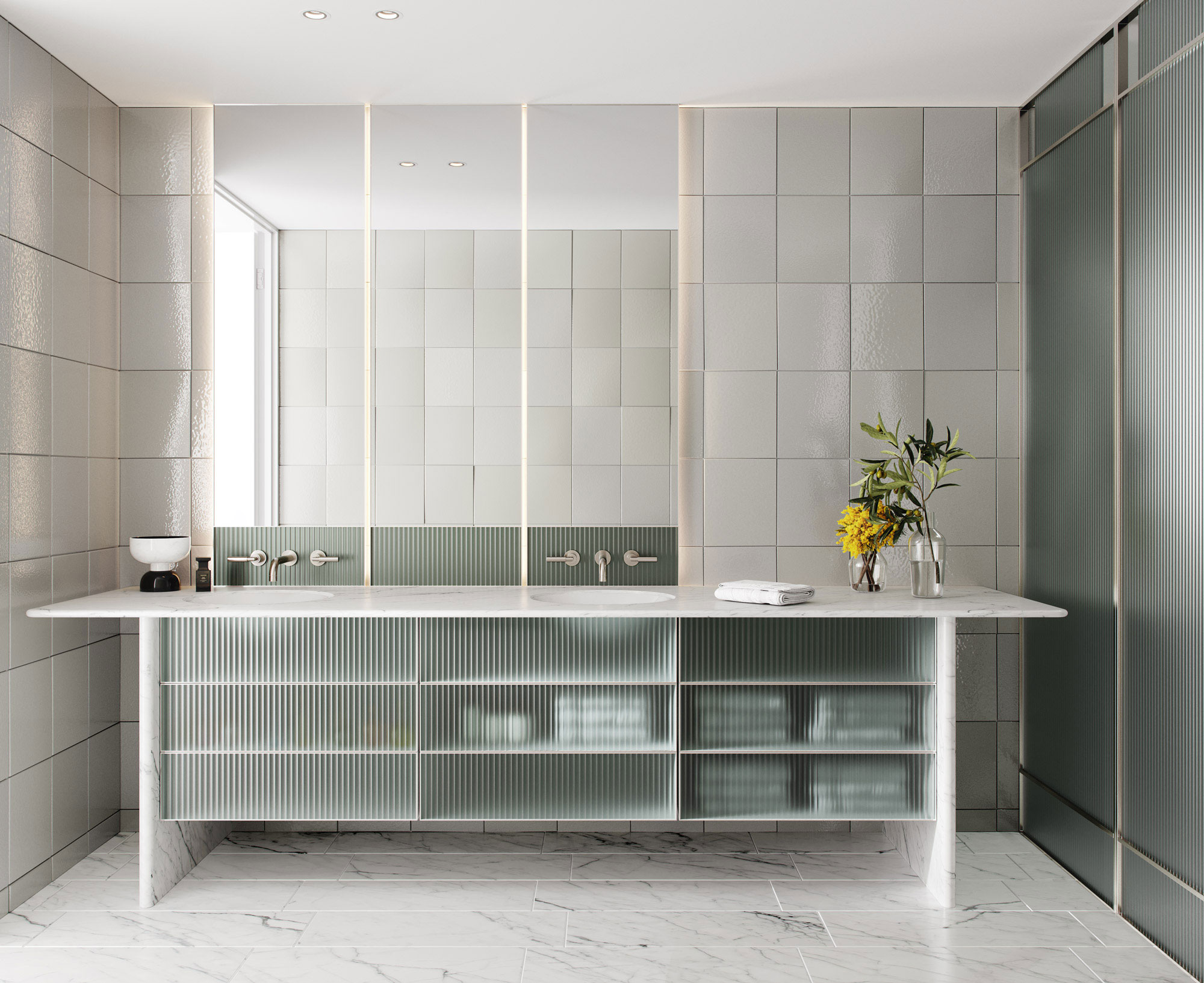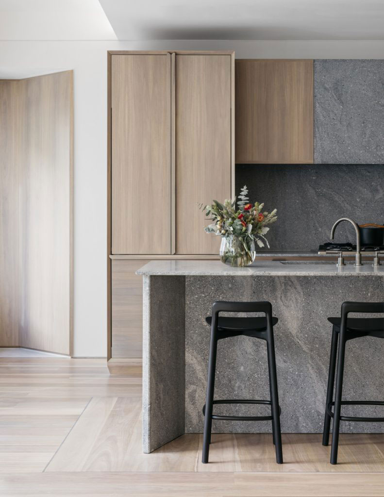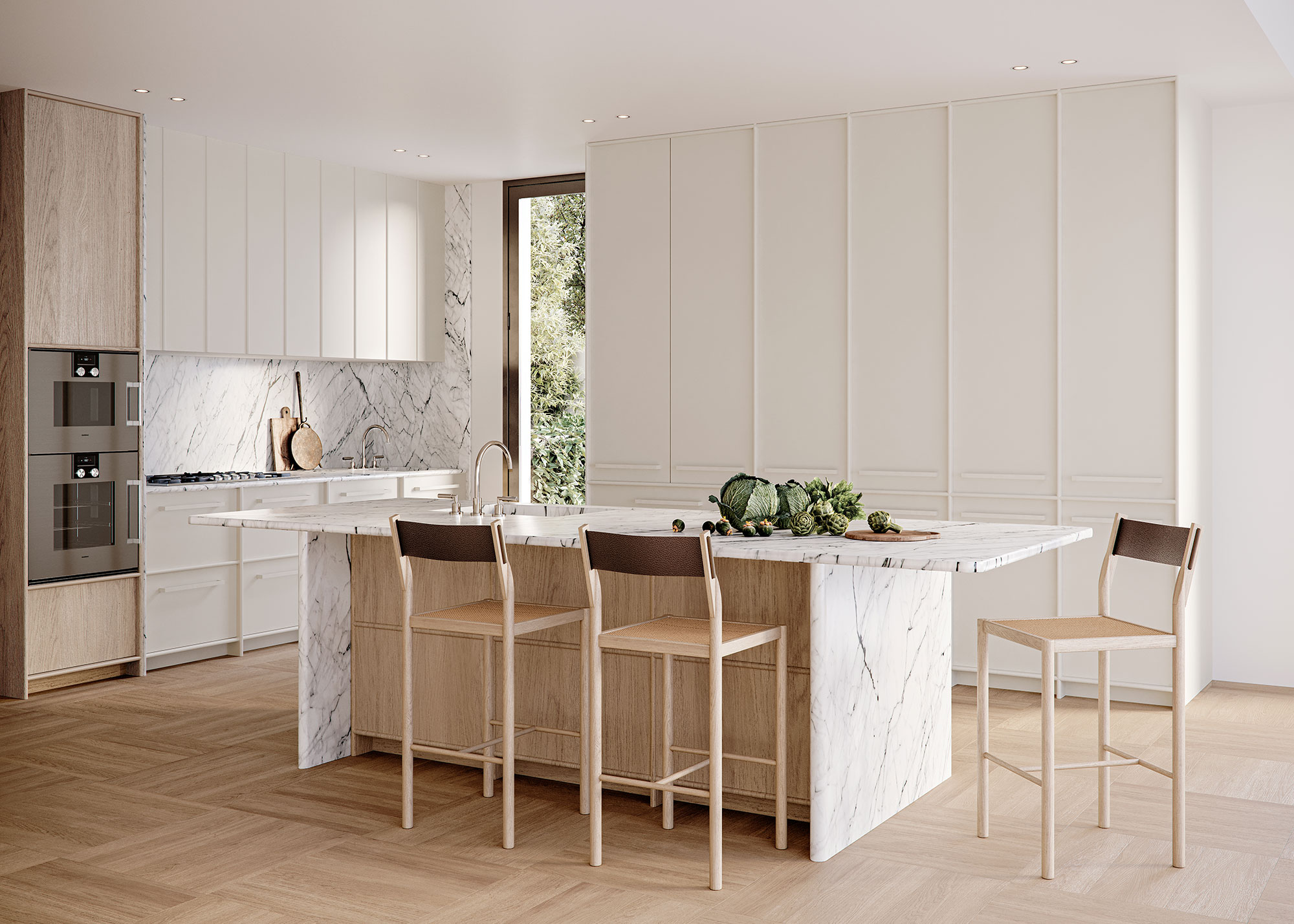 Residences feature magnificent chef's kitchens superbly equipped with high-end Gaggenau appliances, Astra Walker polished nickel tapware, and sweeping island benches in your choice of either marble or granite.